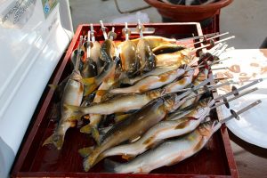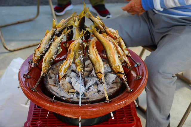 鮎の準備・焼き上げ等、地域の方にはお世話になりました。