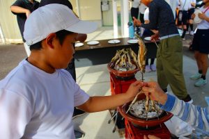 5・6年生が総合的な学習の時間で鮎を食す会を実施しました。