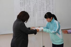 表彰では、夏休みの作品・俳句大会についての表彰を行いました。