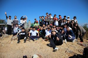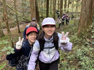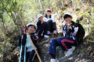 途中、急な坂もあり「足がえらい!」と言いながらも、仲間と声をかけ合いながら全員が登りきることができました♬