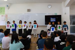 ◎1・2年生は、Tシャツをデザインし、それぞれに好きなことがあり、みんな違うけれどそれでいい!と学んだことを発表しました!