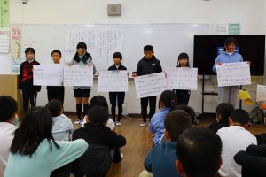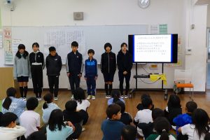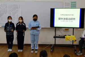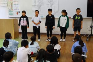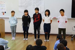 ◎5年生は、先日の関中池研修を通して学んだ、仲間とのつながりの大切さについて発表しました!