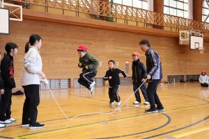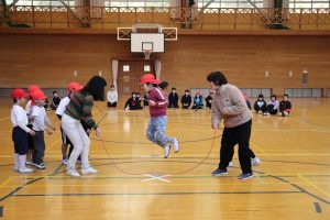 これまでに、体育の時間やサンサンタイムを使って8の字跳びの練習を重ねてきました。