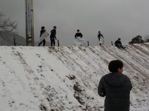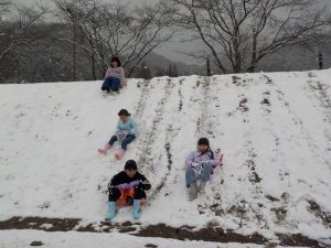 雪の降る中での校外学習となりましましたが、せっかくなので外で雪遊びをしました。