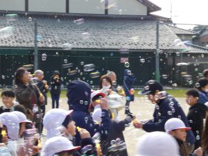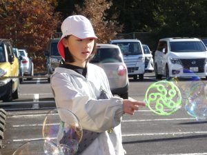 待ちに待った上麻生小最後のなかよしフェスティバル!風は少し冷たかったですが,青空のもと開催することができました。飛水太鼓の演奏,ポン菓子の打ち上げからスタートし,縦割り班による12のブース体験,校庭で”みんなでダンス”,フィナーレの”しゃぼん玉”まで神渕小学校の子や第一保育園の子,保護者,そして地域の方と一緒に思い切り楽しむことができました。