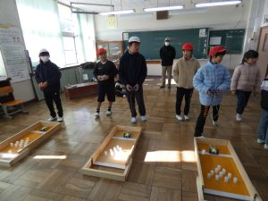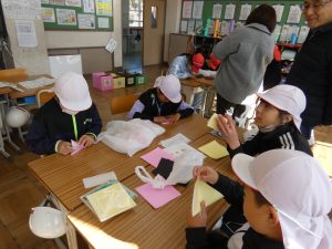 縦割り班による12のブース体験では,5・6年のリーダーが下級生の子を率いて,たのもしく活動する姿がみられました。ブースでの活動前にはしっかりとしたあいさつ,活動終了後は,お礼の言葉まできちんと最後までやりきることができました。ブースでつくったものやくじ引きの景品など何回も袋から出してうれしそうに遊んだり,友達と見せ合ったりしている光景が何とも素敵でした。
