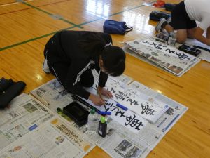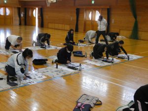 1月8日(木)に書き初め会を行いました。1.2年生は各教室、3.4.5.6年生は体育館で書き初めをしました。