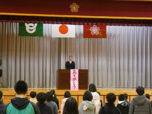 校長先生より「ありがとう」の感謝の気持ちをもって生活していくことの大切さについてお話を聞きました。